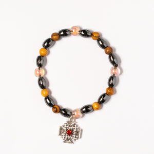 Brățară cu Mărgele Mixte și Crucea Ierusalimului – Piatra Roșie, Protecție și Lumină