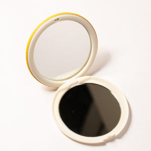 Oglinda are două fețe – una normală și una cu efect de mărire – perfectă pentru a fi purtată în geantă zi de zi. Pe lângă utilitatea ei, este și un obiect cu valoare spirituală, un mic simbol al protecției divine oriunde ai fi.