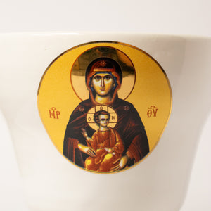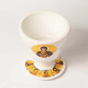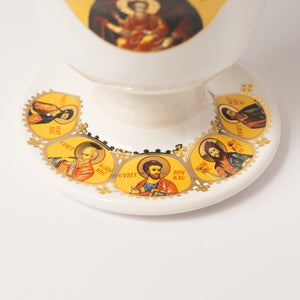 Suport din Ceramică pentru mănuchiul celor de 33 de Lumânări – Decorat cu Icoana Maicii Domnului și Sfinți