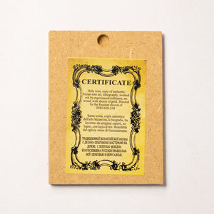 Obiectele sunt Sfințite de către un preot la magazinul nostru din Betleem, acestea sunt confecționate de familii locale.