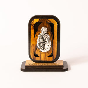 Statuetă Sfânta din Lemn de Măslin cu Icoană Metalică încastrată, lucrată în Betleem