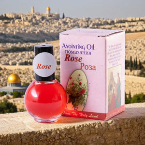 Mir Sfânt din Ierusalim, 10 ml, cu mireasmă de trandafir – un parfum delicat, floral și ușor dulce, simbol al iubirii și al frumuseții divine. Trandafirul este prețuit din vechime ca floare a Maicii Domnului și semn al purității. Aroma sa plină de gingășie aduce liniște, pace și bucurie sufletului, însoțind rugăciunea și meditația. Acest mir sfânt, adus din Țara Sfântă, poartă binecuvântarea locurilor sfinte și este potrivit pentru momente de reculegere și binecuvântare.
