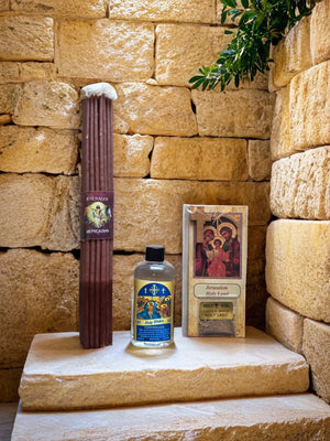 Pachetul Luminii Sfinte: Lumânări din Ierusalim, Apă Sfințită și Esența Ierusalimului