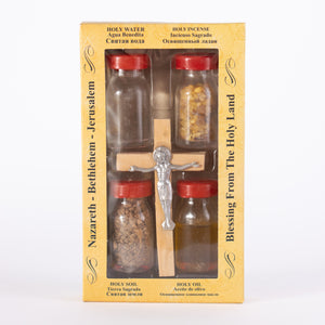 1 Set 4 Elemente Sfinte din Țara Sfântă + Crucifix din lemn de măslin