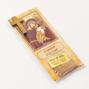 Conține pământ sfânt din Ierusalim, simbol al legăturii vii cu locurile sfinte unde a pășit Mântuitorul, o frunză de măslin de pe Muntele Măslinilor, semn al păcii și speranței, o cruciuliță din lemn de măslin, lucrată din lemnul binecuvântat al Ierusalimului, purtătoare de credință și mântuire, și o iconiță sfântă, ce aduce lumină și putere sufletească.