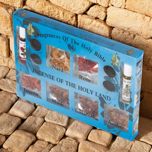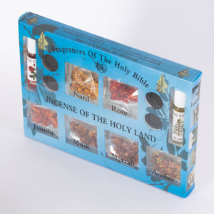 Set Tămâie din Țara Sfântă cu 6 arome biblice + 2 sticluțe mir și 4 cărbuni pentru ardere