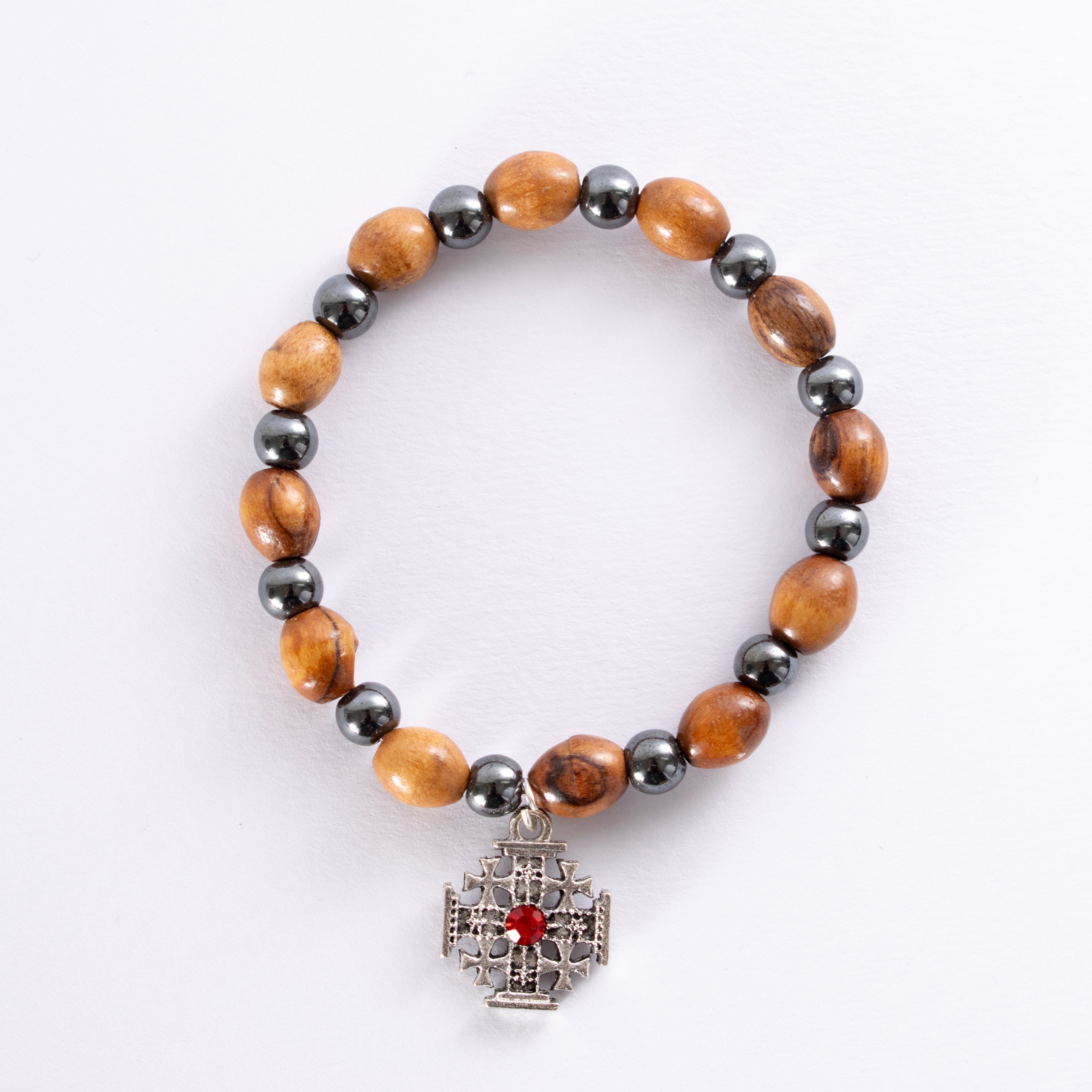 1 Brățară Protecție Sfințită din Lemn de Măslin cu Hematit și Onix din Ierusalim
